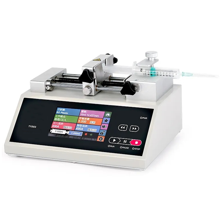 TYD03-01型实验室注射泵采用一体化台式设计,流量范围:0.037nL/min~16.663mL/min,是单通道科研注射泵,可以装卡1支塑料注射器